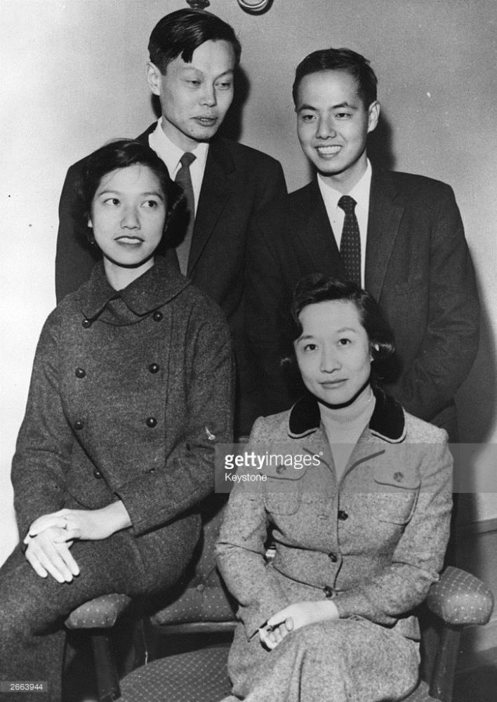 李政道和杨振宁两家的早期合影,两位站在对方太太的身后