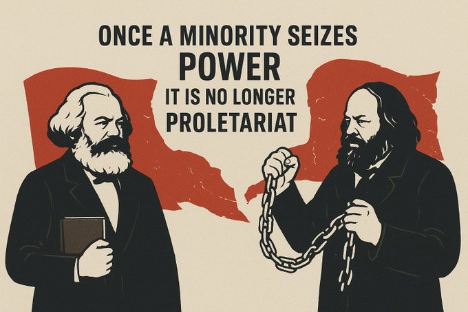 所谓“无产阶级专政”,其实就是打着人民的旗号,统治人民。俄国无政府主义者巴枯宁(Mikhail Bakunin),曾是马克思的好友,却第一个看穿了这套“专政陷阱”。他指出:一旦少数人代表无产阶级掌握国家权力,他们就会从被压迫者变成新的压迫者。他还批判说,马克思的理论,只会制造一个“红色官僚阶级”——以“人民的名义”统治人民的新贵族。马克思对此无言以对,两人因此决裂。今天回看,巴枯宁无疑是对的。谁再跟你提什么“无产阶级专政”,谁就是十足的骗子。