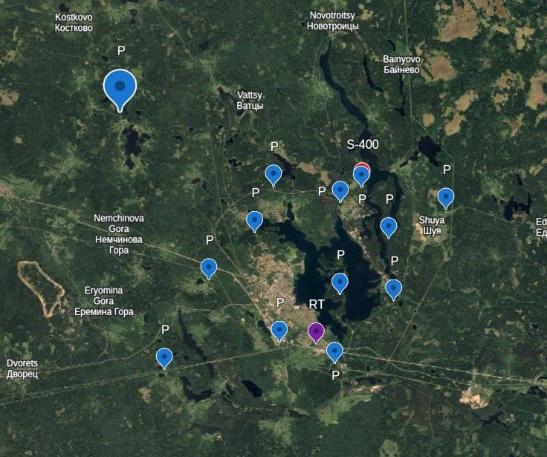 普京的瓦尔代(Valday)官邸周边据乌克兰情报部门指称已被部署多套防空系统,蓝色为铠甲-S1,红色为 S-400。图:翻摄自 X