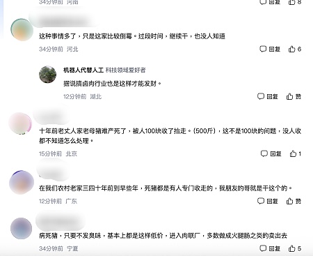 还有网友直言:“不要舆情一暴,就处理。(猪只)死亡具体原因不查查?”