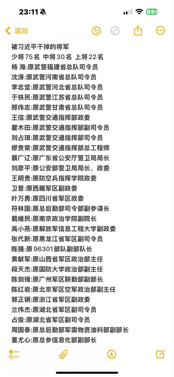 他上台后一手清洗的军队高层,比中共参与的历次战争加起来的将领损失还多。习*近*平干掉上将22名,中将30名,少将75名。没有任何对外战争,让中共付出过如此惨重的代价。