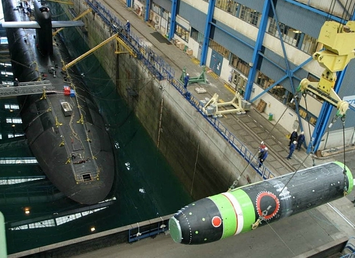 一艘法国凯旋级潜舰正在基地里装填M51弹道导弹。图:翻摄自MDC军武狂人Triomphant