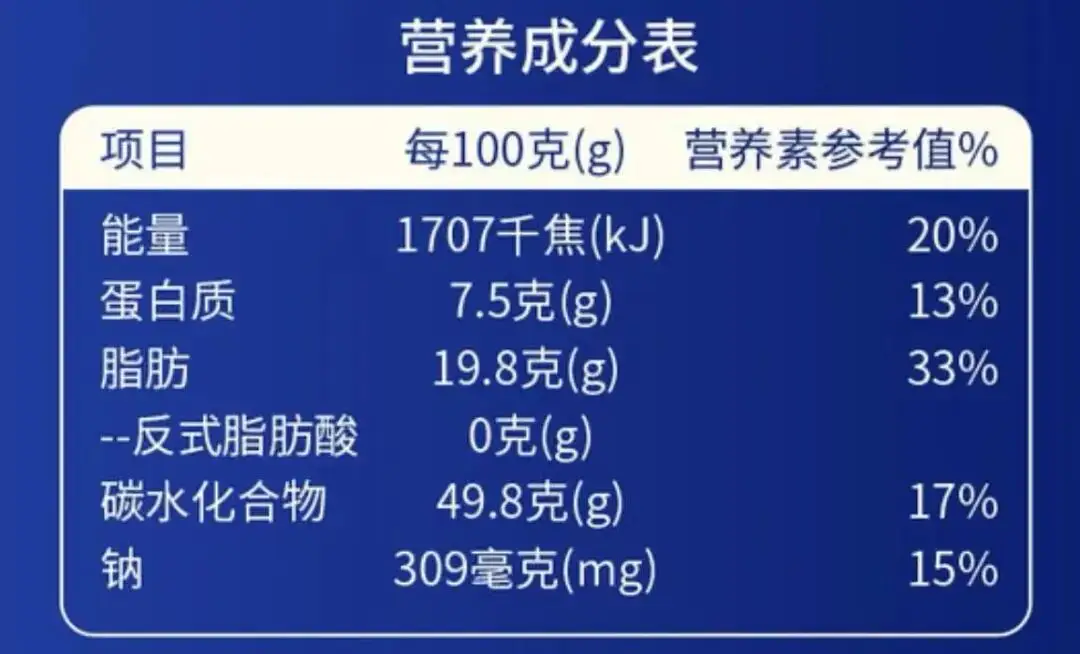配料表一般不出前几位就能看到添加糖、各种油脂成分。