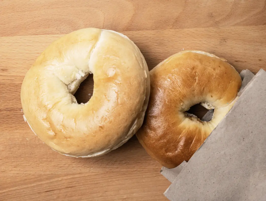 贝果,吃起来有浓郁麦香,内部的气孔小而紧实,嚼起来特别有质感。