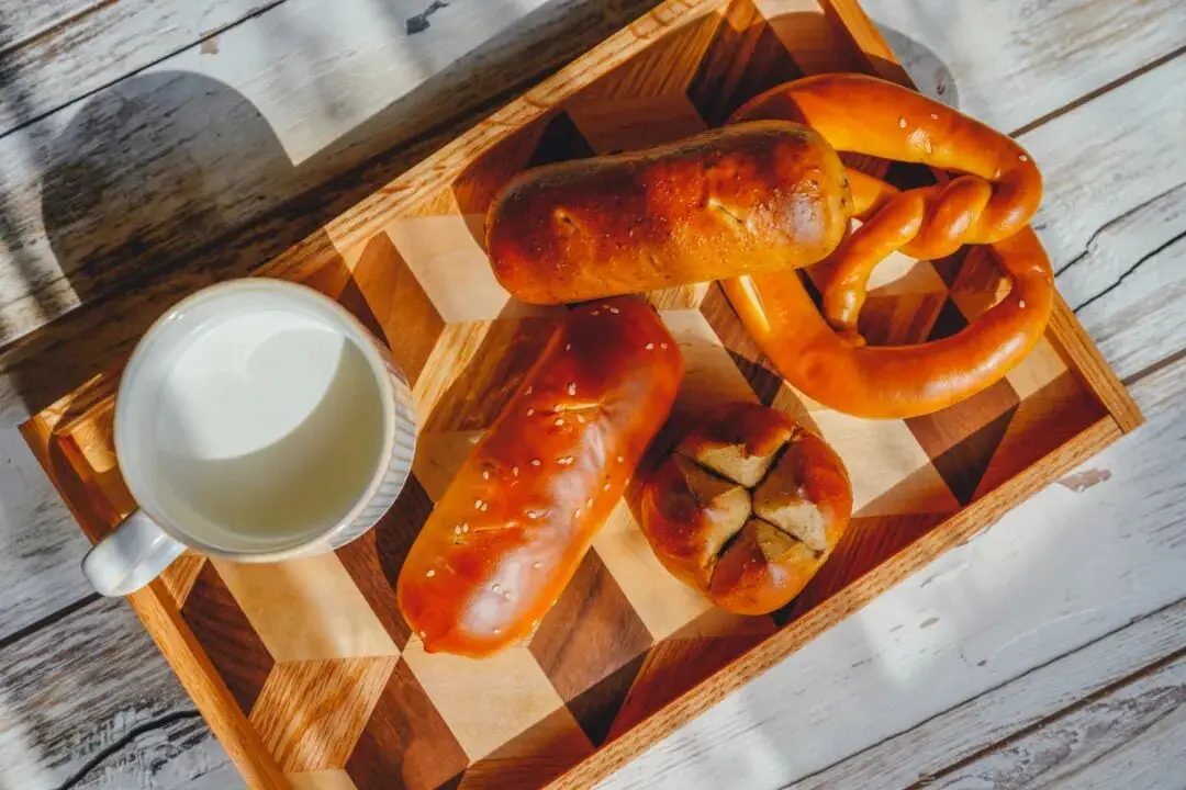 美味推荐:碱水面包泡牛奶、碱水面包抹芝麻酱