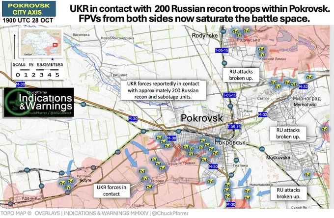 有消息称,目前已经有约200名俄军士兵进入红军城市区内,与乌军展开激烈争斗。图:翻摄自@ChuckPfarrer X账号