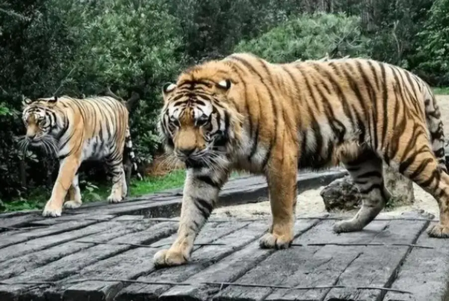 工作人员迅速行动起来,一边呼叫支援,一边试图吸引老虎的注意力。但老虎已经盯上了猎物,紧追不舍。