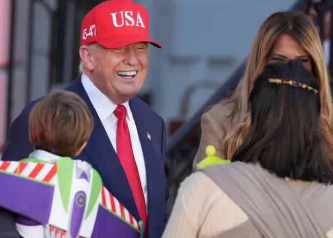 川普亲自拎桶发糖果 * 阿波罗新闻网