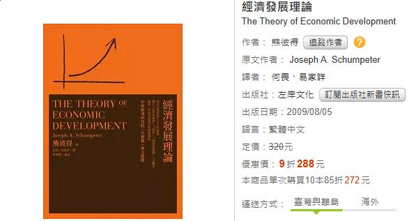 读这本一九一二年的旧作(英译本一九三四年),再对照今日的经济学书籍,不免有所感触,今天的经济学家,虽然也强调“人的行为”,但其实在图形和数学模式的包装下,几乎与“机械人”无异,完全失去了人味,而读熊彼得的书,就觉得有人的呼吸在,特别其强调经济制度内在因素,更是当前经济学书籍所丢弃,但却是极其重要的。因此,很高兴能看到本经典书中译在台湾出现,可是由于本译本出自中国大陆学者,一些用语会让台湾读者多费一番思量,即便如此,其精髓仍然存在呢!虽经近四年后才再版,但在此速食化、不重视读书的时代,这么生硬且不易懂的翻译书得以再版,更证明其具长远价值性呢!
