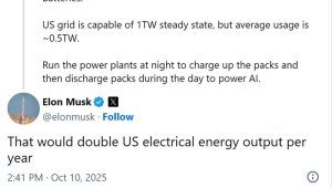 - 马斯克给出AI能源解决方案:电网夜间储能,白天放电