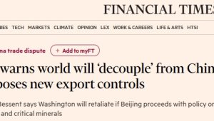 - 贝森特:中国与世界为敌 美国有比稀土更狠的手段(图)