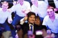 2025年10月26日,阿根廷布宜诺斯艾利斯,阿根廷总统米莱(中)在执政党自由前进党总部向支持者挥手致意。阿根廷10月26日举行国会期中选举,执政党自由前进党(LLA)夺下众议院过半席次,成为最大赢家。使米莱政府在国会中扩大影响力。中央社报导,据官方初步开票结果,这次选举投票率6...